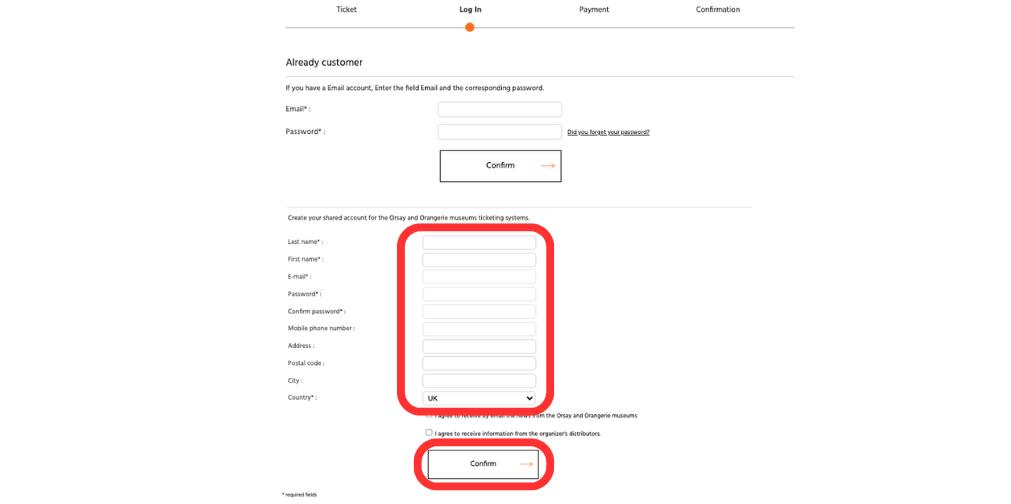 入力内容に間違いがないかしっかり確認してください。特にメールアドレスは、チケットを受け取るのに必要なので、間違いがないように気をつけてください。