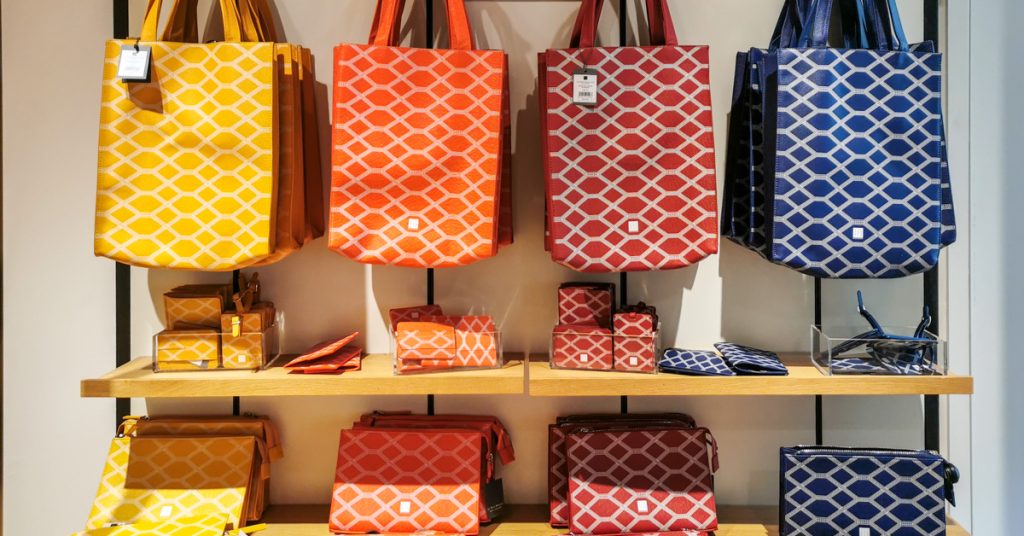 お土産におすすめなのは、サマリテーヌのオリジナルバッグ。黄色をポイントにしたデザインでとってもおしゃれなんです。生地も厚めでガシガシ使えそう。